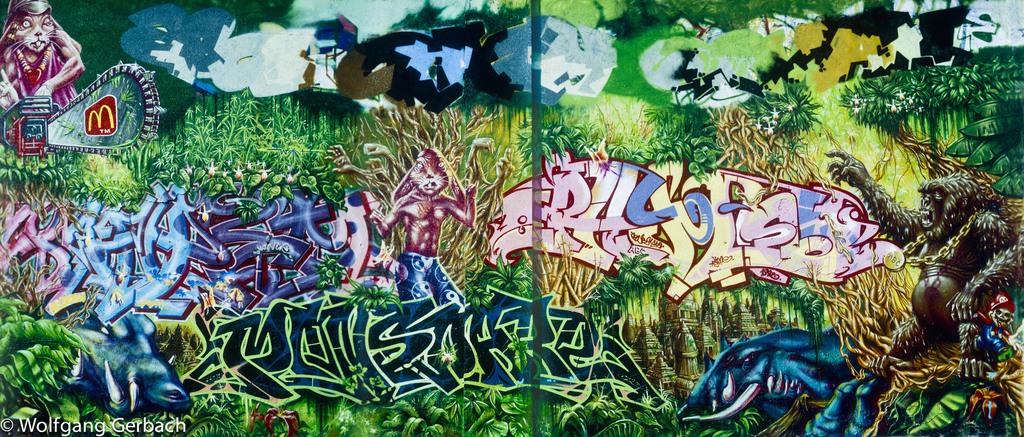 Die Anfänge der Graffiti-Zeit gingen einher mit großem handwerklichen Aufwand beim Fotografieren, vielen Litern verbrauchter Chemie und Stappeln von teuerem Fotopapier.... und Staub und Fussel, immer und überall.