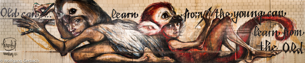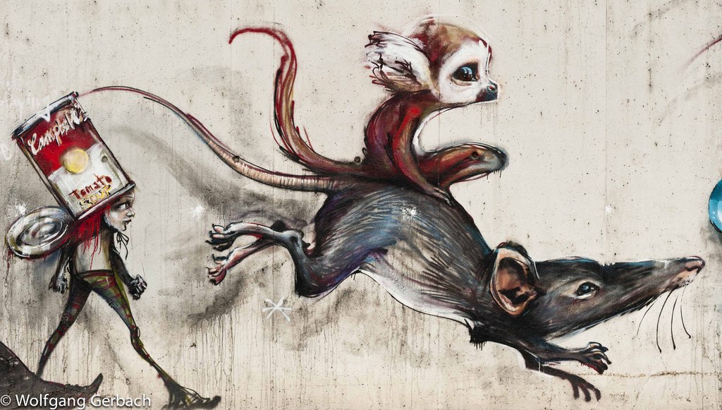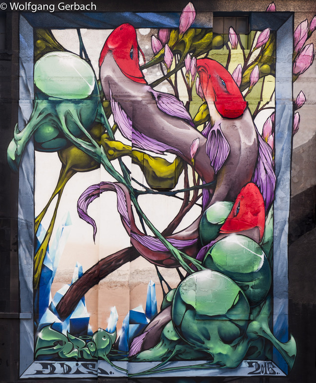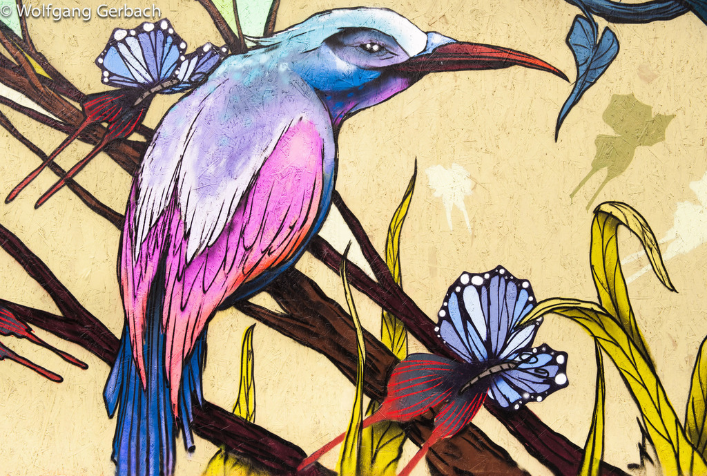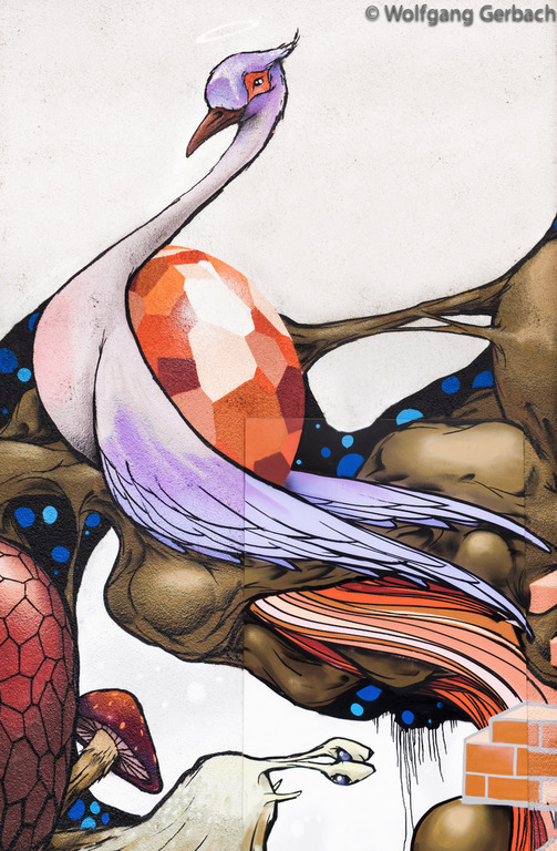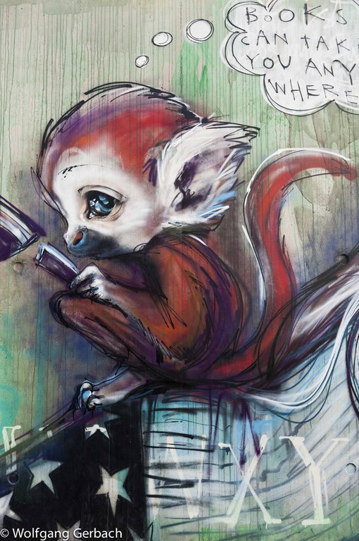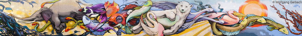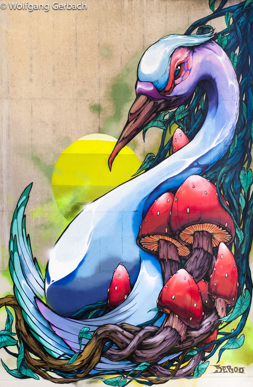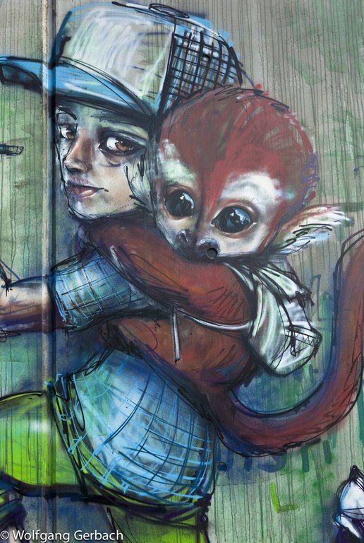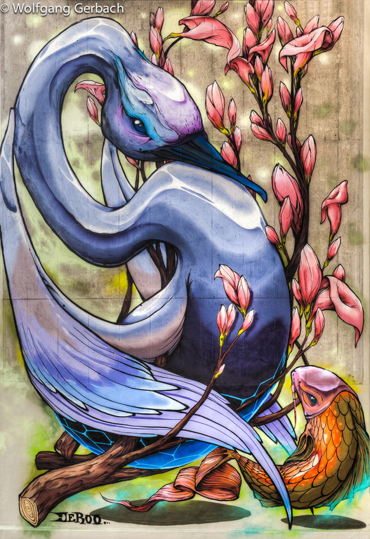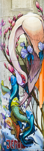 Jeroo ist ein Lehrer und Künstler aus Stuttgart, der wunderschön kräftig-farbene Tiermotive malt; so werden selbst triste Autobahnbrückenpfeiler zu einem Seherlebniss. Oder Bauzäune am Stuttgarter Zoo....