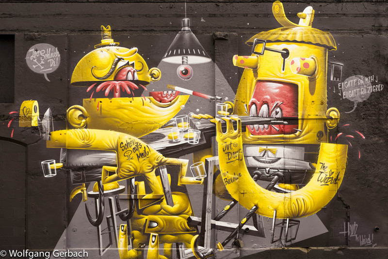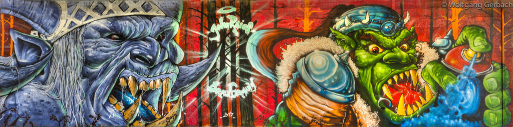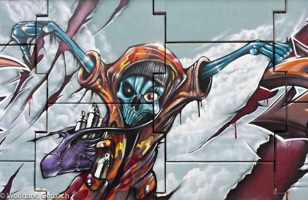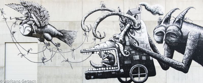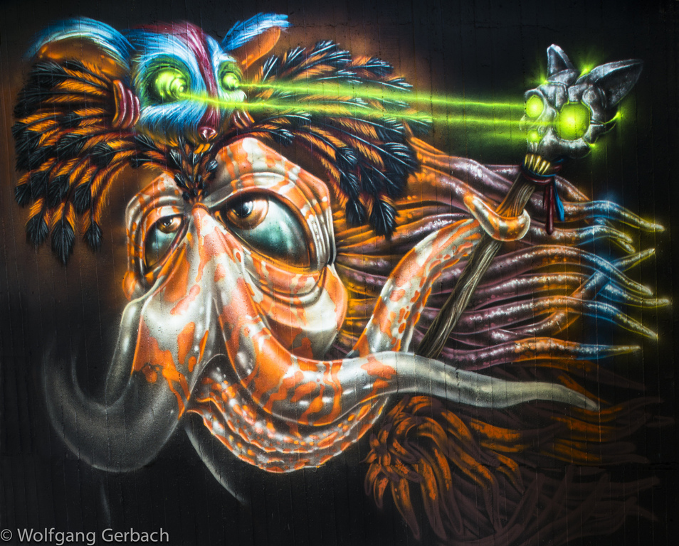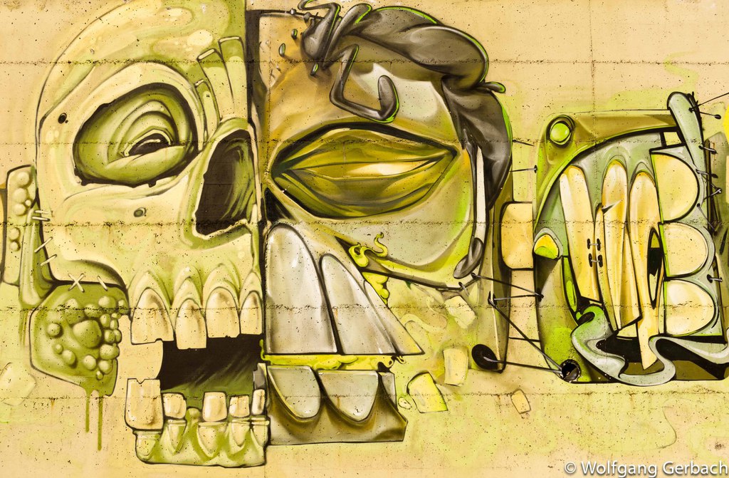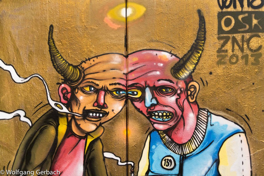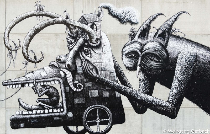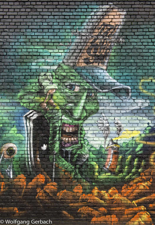 Grässliche Fratzen, eklige Monster und bösartige Bestien tummeln sich in den Städten, -auch an Wänden und Mauern.